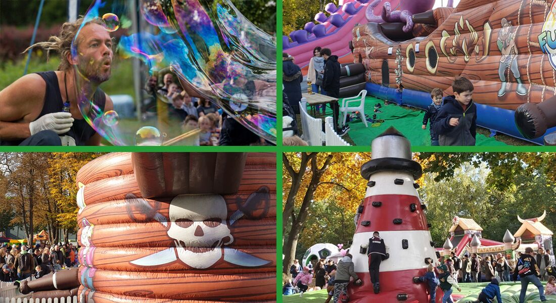 Klettern im riesigen Piratenschiff oder der Riesenrutsche, Fahrten mit den Karussells und Eisenbahnen, Bogenschießen oder Riesenspaß in den Wasserlaufrollen.